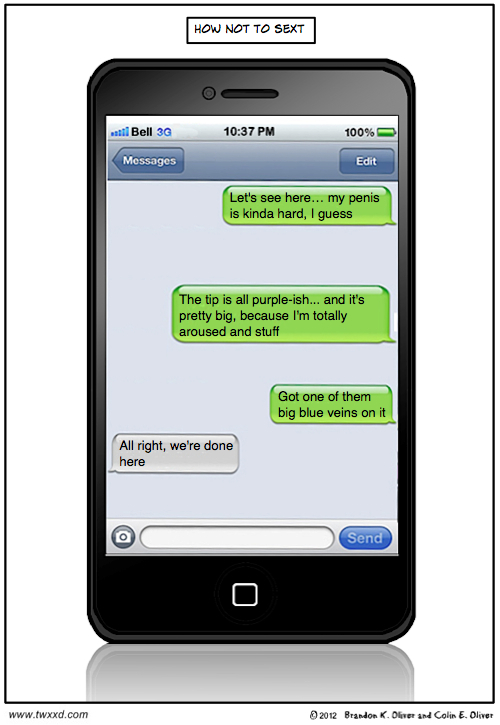 I'm not really in to sexting, myself. And not just because my cell phone is shamefully ancient (let's just say it flips... I'm convinced it's indestructable). So much of communication isn't in the words said, there's context, there's tones, there's body language... but who needs those things when you have emoticons, amiright?