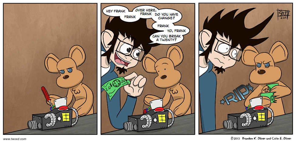 Best not to interrupt Frank while he's working. Losing twenty bucks should be the least of your concerns. ~C Be sure to like us on Facebook and follow us on Twitter, eh ;)